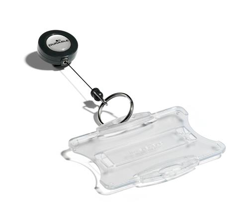 Azonosítókártya-tartó, kihúzható, kulcskarikával, DURABLE, antracit