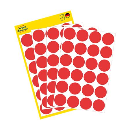 Etikett, 18 mm, kör, eltávolítható, AVERY ZWECKFORM, piros, 96 etikett/csomag