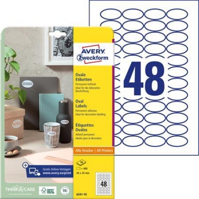 Etikett, univerzális, 40x20 mm, ovális, AVERY ZWECKFORM, 480 etikett/csomag