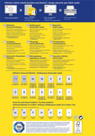 Etikett, univerzális, eltávolítható, 63,5x29,6 mm, AVERY ZWECKFORM, 810 etikett/csomag