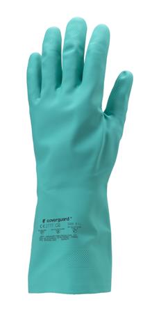 Védőkesztyű, nitril, vegyszerálló, érdesített, kesztyű, 8/M méret, zöld